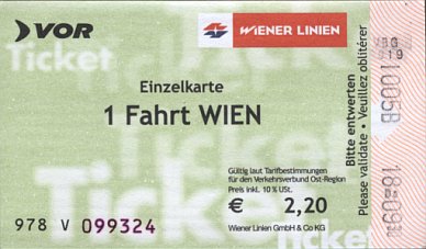 Streifenkarte der ÖBB f¨r den Wiener Verkehrsverbund VOR