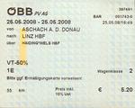 ÖBB ticket Aschach an der Donau - Linz Hbf via Wels Hbf. 50% Vorteilscard discount 25.5.2008 Martin P. |