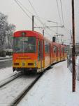 Heavy snowfall in Graz: Tram #521 on route 5 near stop Keplerbruecke.