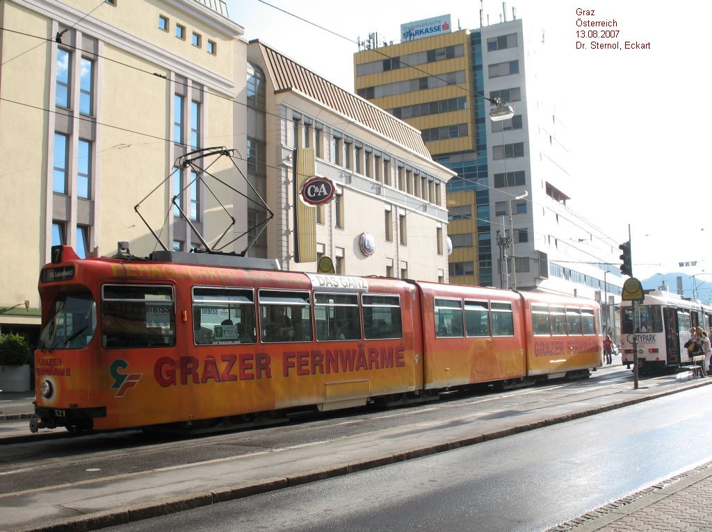 | 7936 Graz 13.08.07 Tram 521, Linie 7, nach St.Leonhard/LKH am Eggenberger Gürtel Dr. Sternol, Eckart (Foto) Dr.Sternol@t-online.de |