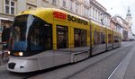 Graz tram type Cityrunner with an advertisement livery.