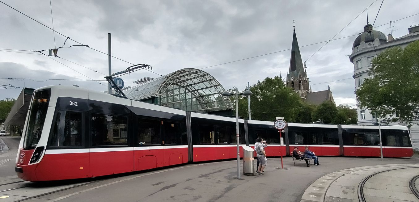 An der Hst Quartier Belvedere erscheint der moderne Wagen 338, der erst am 13.12.22, also knapp 2 Wochen vor dem Foto, in Dienst gestellt wurde. Entsprechend gross ist das Interesse der Menschen, die diesen Neuling bestaunen. Er ist auf Linie 18 zur Endstelle Burggasse-Stadthalle unterwegs. Das ist nahe dem Westbahnhof, womit diese 18 eine besondere Bedeutung unter den Trambahnlinien hat. Als einzige Linie verbindet sie beide Bahnhöfe umsteigefrei. Dr. Sternol, Eckart (Foto) Dr.Sternol@t-online.de |