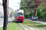 Tramcar E1 4507 with sidecar c3 1204 of tramway vienna on route D to Nußdorf near stop Althanstraße.