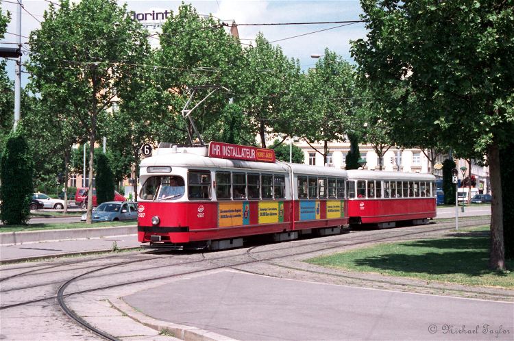Wien Tram. E1 Class 4507 on a westbound route 6 at the Westbahnhof on Thursday May 15th, 2003.