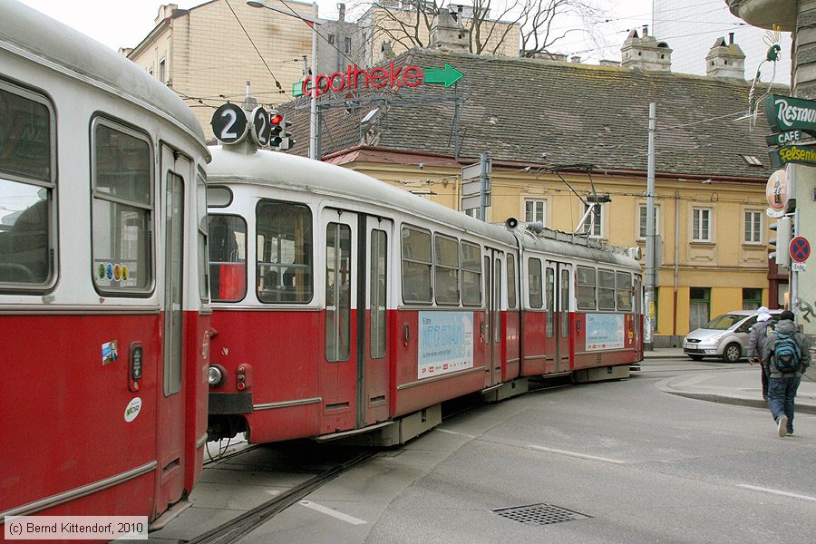 Wien - Straßenbahn - 4500 Triebwagen 4500 auf Linie 2 bei der Haltestelle Josefstädter Straße am 26. Februar 2010.