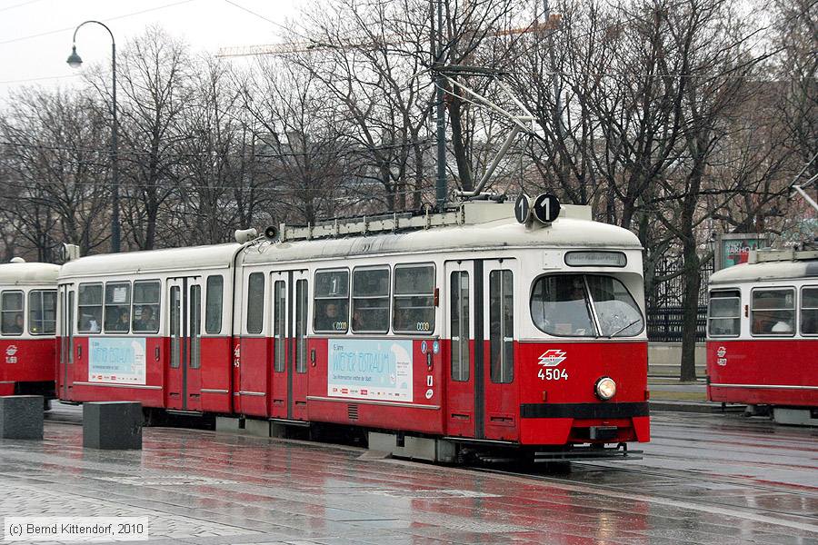 Wien - Straßenbahn - 4504 Triebwagen 4504 auf Linie 1 bei der Haltestelle Dr.-Karl-Renner-Ring am 26. Februar 2010.