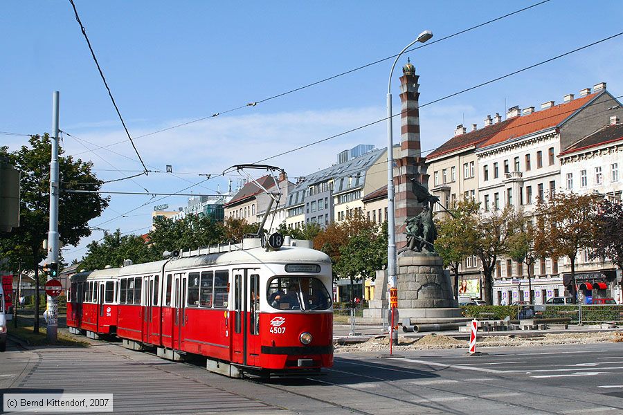 Wien - Straßenbahn - 4507 Triebwagen 4507 auf Linie 18 am 10. August 2007 beim Südbahnhof.