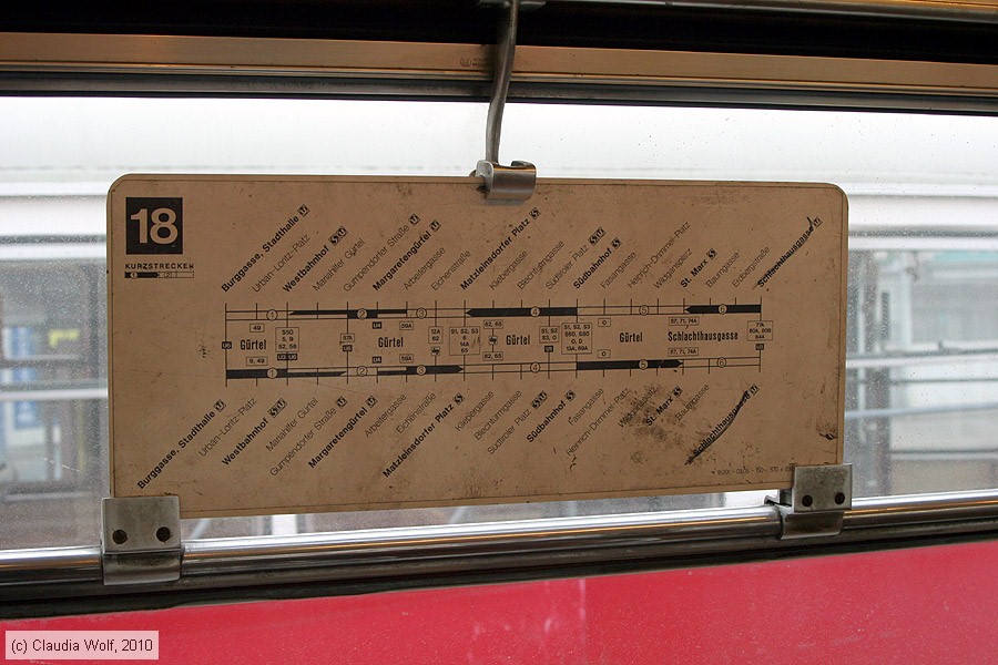Wien - Straßenbahn - 4508 Steckschild mit dem Verlauf der Linie 18, aufgenommen am 23. Februar 2010.