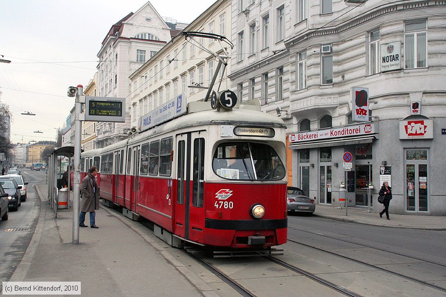 Wien - Straßenbahn - 4780 Triebwagen 4780 auf Linie 5 bei der Haltestelle Spitalgasse - Währinger Straße am 26. Februar 2010.