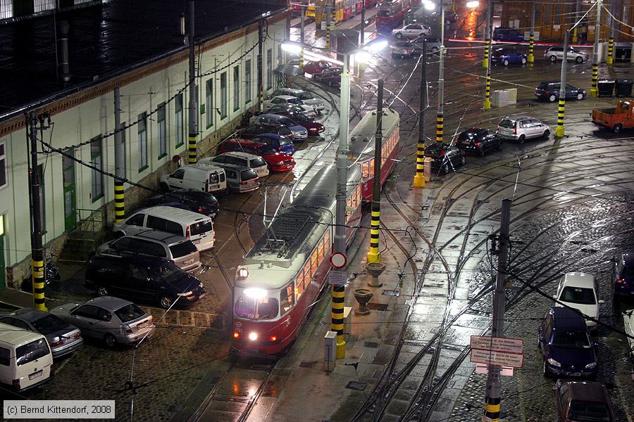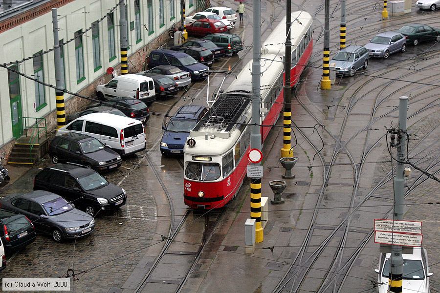 Wien - Straßenbahn - 4781 Triebwagen 4781 mit Beiwagen 1312 als Linie O bei der Ausfahrt aus dem Betriebshof Favoriten in die Gudrunstraße am 15. September 2008.