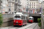 Tramcar E1 4830 with sidecar c4 1339 of tramway vienna at Kärntner Straße.
