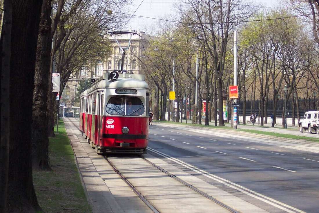 Vienna tram E1 4838 on route 2 at stop Schottentor.