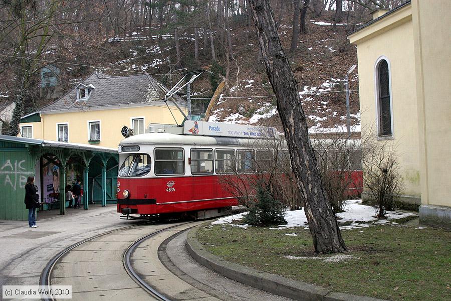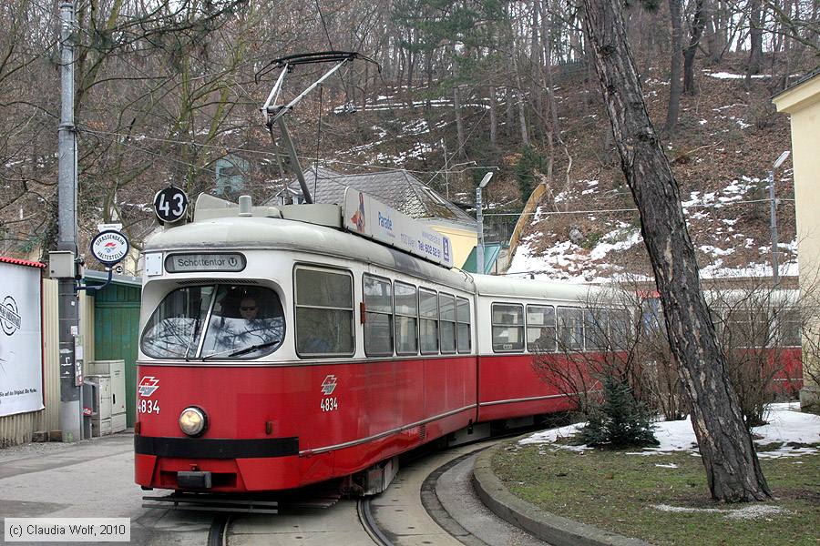 Wien - Straßenbahn - 4834 Triebwagen 4834 auf Linie 43 an der Haltestelle Neuwaldegg, aufgenommen am 23. Februar 2010.