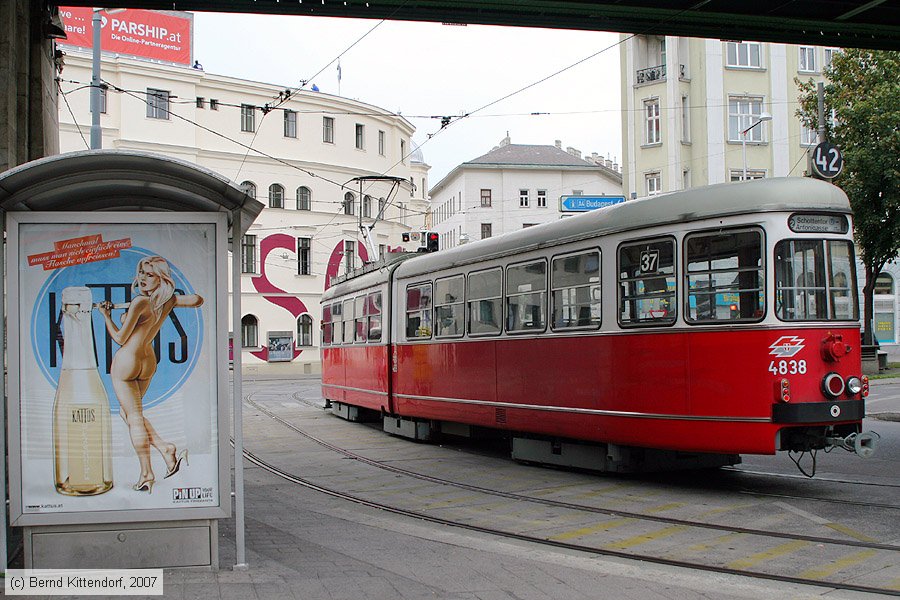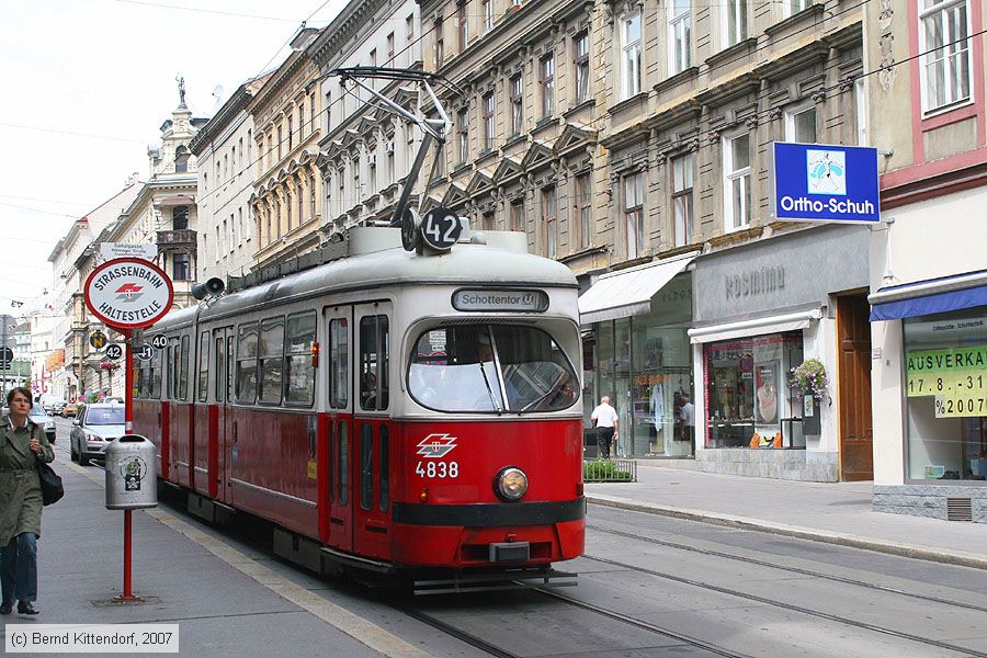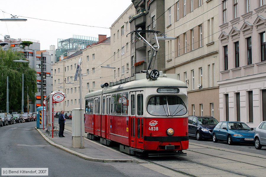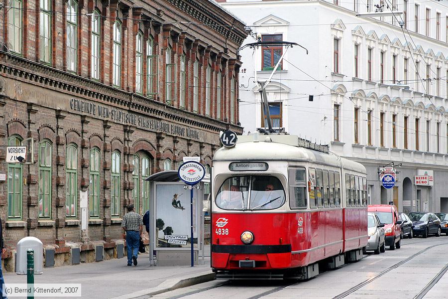 Wien - Straßenbahn - 4838 Triebwagen 4838 auf Linie 42 an der Endstelle Antonigasse am 10. August 2007.