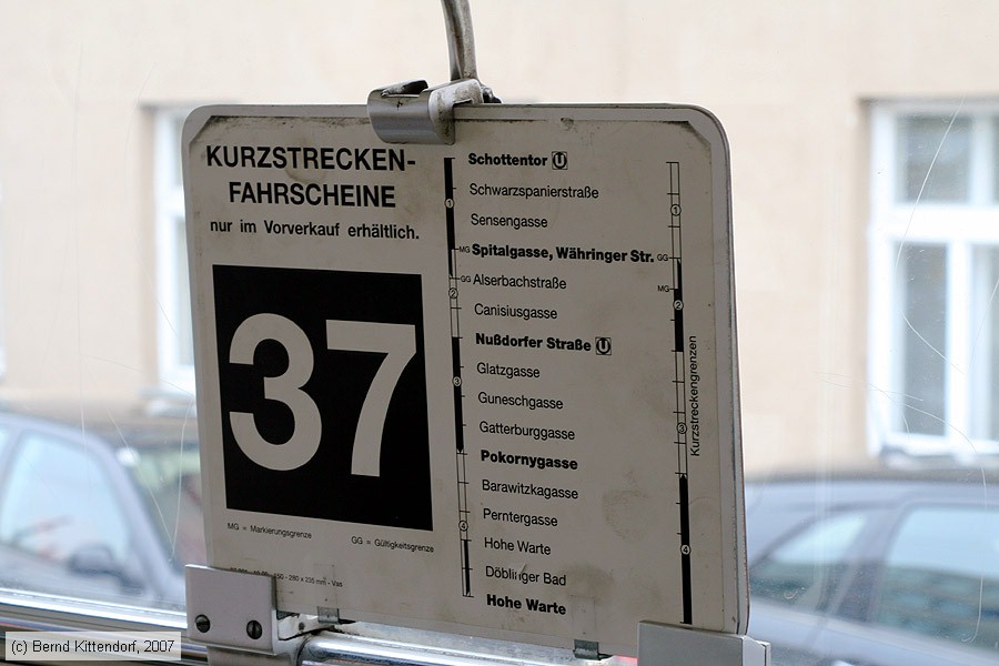 Wien - Straßenbahn - Linienschild Beschilderung für Linie 37 im Triebwagen 4838, aufgenommen am 10. August 2007.