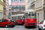 Wien - Straßenbahn - 1346 Beiwagen 1346 auf Linie 5 bei der Haltestelle Lerchenfelder Straße am 26. Februar 2010 während eines Regenschauers. Die Linie 5 kreuzt hier die Strecke der Linie 46.