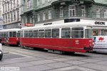 Wien - Straßenbahn - 1368 Beiwagen 1368 (am Triebwagen 4845) auf Linie 1 an der Haltestelle Schwarzenbergplatz am 10. August 2007.
