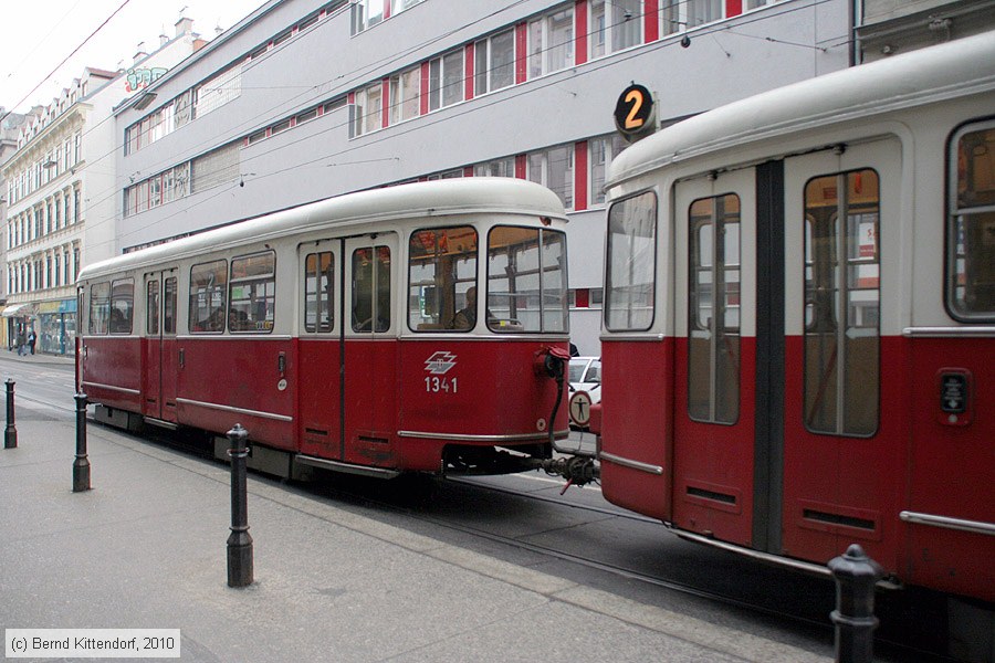 Wien - Straßenbahn - 1341 Beiwagen 1341 auf Linie 2 an der Haltestelle Blindengasse am 26. Februar 2010.