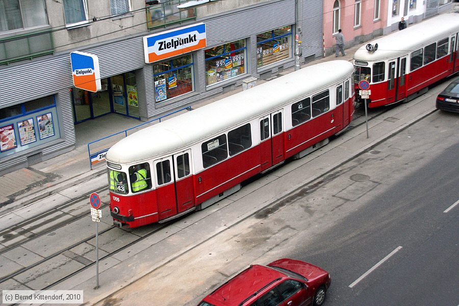 Wien - Straßenbahn - 1355 Beiwagen 1355 auf Linie 43 in der Jörgerstraße nahe der Haltestelle Alser Straße am 26. Februar 2010.