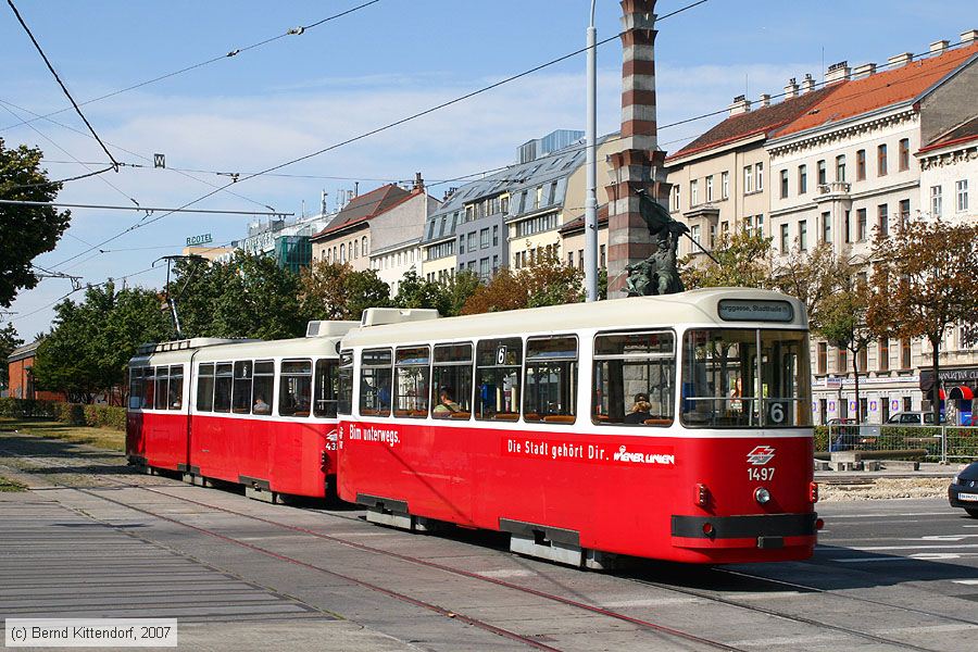 Wien - Straßenbahn - 1497 Beiwagen 1497 auf Linie 6 an der Haltestelle Westbahnhof am 10. August 2007.