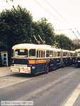 Linz - O-Bus - 69 Gelenk-Trolleybus 69 auf Linie 43, aufgenommen am 11. August 1983.