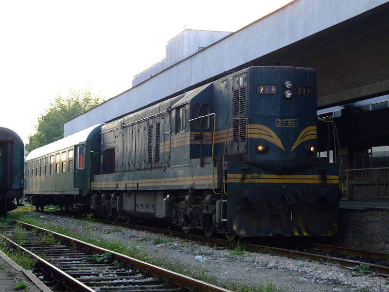 ZBH 661-307 at Sarajevo with 08.00 to Zagreb. The 661 will pull the train until Visoko because there is no overhead wire from Sarajevo to Visoko. From Visoko to Zavidovici the train will be pulled by the 441 seen behind the 661. From Zavidovici to Doboj it will be pulled by another diesel, either ZRS or ZBH 661. From Doboj to Novi Grad, a ZRS 441 will haul the train. A HZ 1141 pulls the train from Novi Grad to Zagreb.