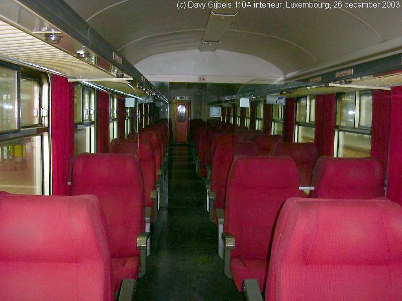 Interior of a 1st-class I-10 (A) car of SNCB-NMBS, seen on IR 118 (Luxembourg--->Liers).