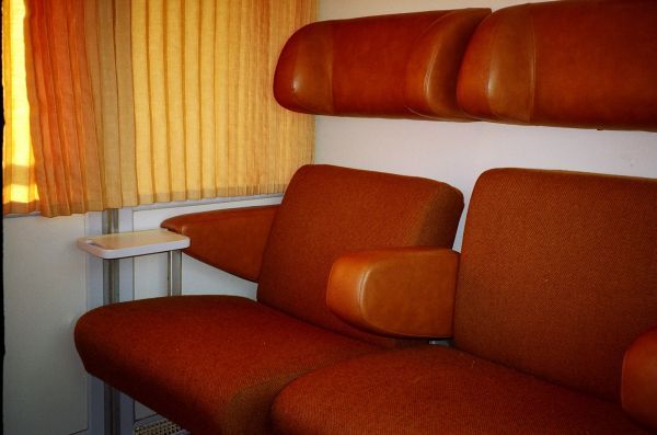 Interior of a Eurofima 2nd-class (I6-B) car of SNCB-NMBS, still in original condition and C1 livery.
