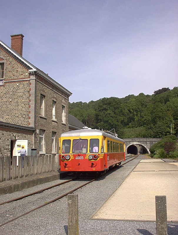 Bocq Railway - Belgium TSP/PFT museum diesel motor car 4605 ready to depart to Ciney again. Dorinne-Durnal - 26/08/2001