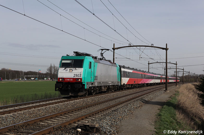 NMBS 2803 / E 186 125 IC 9248 (Amsterdam Centraal-Brussel Zuid) Dordrecht, 21-03-2017. © Eddy Konijnendijk. |