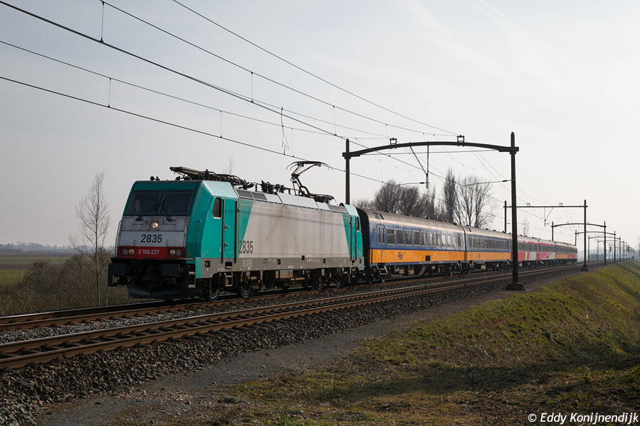 NMBS 2835 / E 186 227 IC 1225 (Den Haag HS-Brussel Zuid) Willemsdorp, 04-06-2013. © Eddy Konijnendijk. |