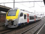 AM08 005 stands at Vilvoorde on 17th April 2012 with IR2839 the 18:19 service to Nivelles. The service originates from Antwerpen Centraal. The units are currently being tested this revenue service and the new airport link from Mechelen.