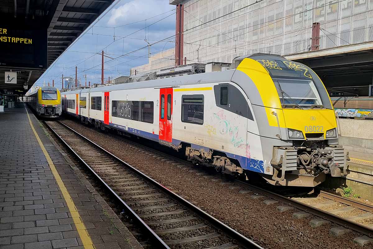 Belgian NMBS/SNCB EMU-3 class 08 nr. 08022 (NVR 94 88 008 022 2-5 B-B) at Bruxelles Midi Station. 04/06/2024.