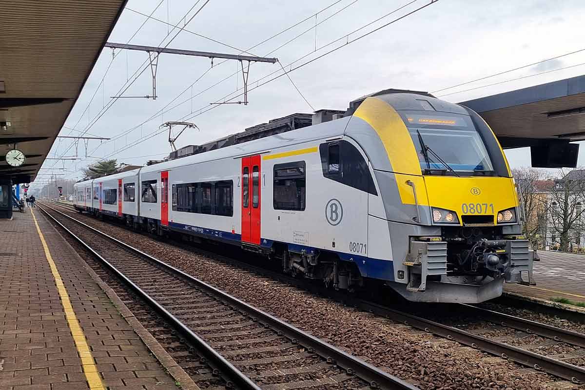 NMBS/SNCB EMU-3 Class AM 08-071 (NVR 94 88 008 071 1-7 B-B) at Lokeren Station Belgium on 20/03/2023.