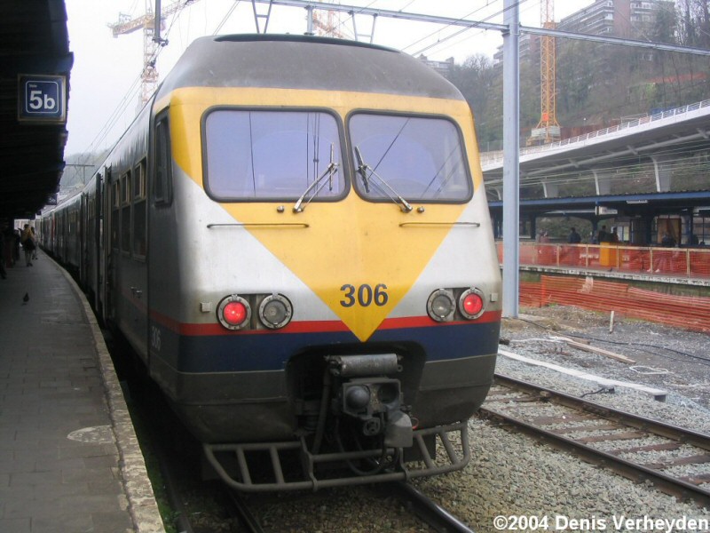 | NMBS AM 80 306 is waiting at Liege-Guillemins station , and is soon going to depart as IC 2432 to Brussels-Midi via Namur.Liege-Guillemins , 09/04/2004. Photo ©2004 Denis Verheyden (msts_2@hotmail.com).Photo taken with a Canon Powershot A70 digital Camera.You can obtain the original 2048x1536 image by me. |