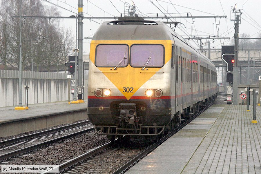 SNCB - 302 Triebwagen 302 im Bahnhof Halle, aufgenommen bei Regen am 23. Februar 2011.