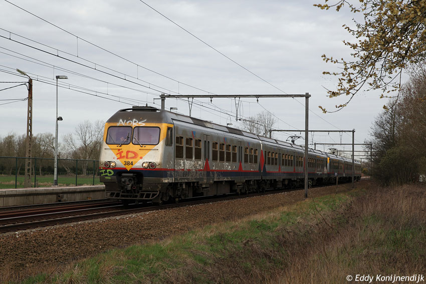 NMBS 384 + 394 L 2859 (Antwerpen Centraal-Leuven) Melkouwen, 16-04-2013. © Eddy Konijnendijk. |