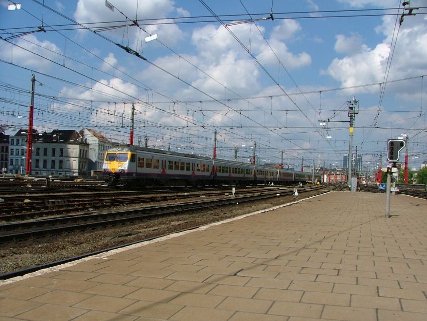 Automotrice AM80 et une consoeur assurant le train IR 2415 vers Dinant. 2 Motorstellen MS80 verzekeren de IR 2415 naar Dinant. 2 EMU 80 are heading the IR 2415 to Dinant. Gare/Station: Bruxelles-Midi/Brussel-Zuid Date/Datum: 13-06-2009 Photo: Durvaux Christophe |