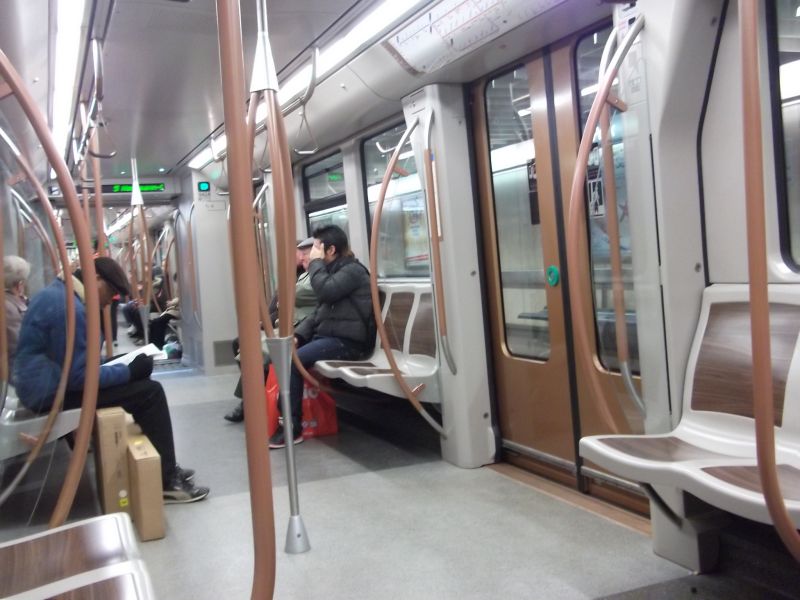 Interior of a Bombardier metro train in Brussels, Belgium. 21.04.2012