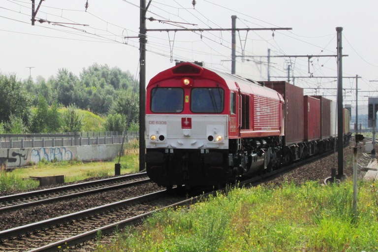 La locomotive DE6311 remorque un train de containers à Hever sur la ligne 53a, 12 décembre 2013.