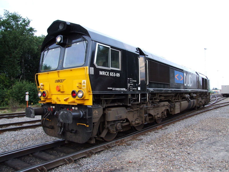 MRCE 653-09, a black Class 66 loco that Dillen et Le Jeune Cargo (DLC)
