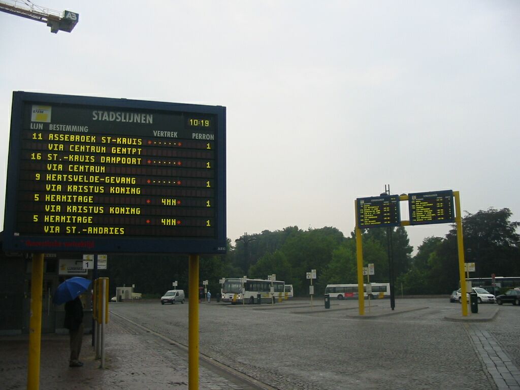 Bruges Main Station: Display announcing the next buses departing Aug 18, 2003 Photo by Stefan Walter |