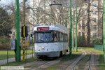 Straßenbahn Antwerpen - 7027 Triebwagen 7027 auf Linie 11 an der Haltestelle Rooseveltplaats, aufgenommen am 26. Februar 2011.
