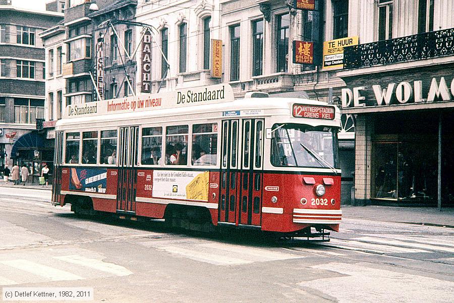 Straßenbahn Antwerpen - 2032 Triebwagen 2032 auf Linie 12, aufgenommen am 30. August 1982.