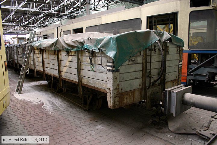 SNCV - 15719 Arbeitsbeiwagen A.15719 in der Halle des Betriebshofs Anderlues Jonction am 20. September 2004. Das Fahrzeug stammt aus dem Jahr 1914.