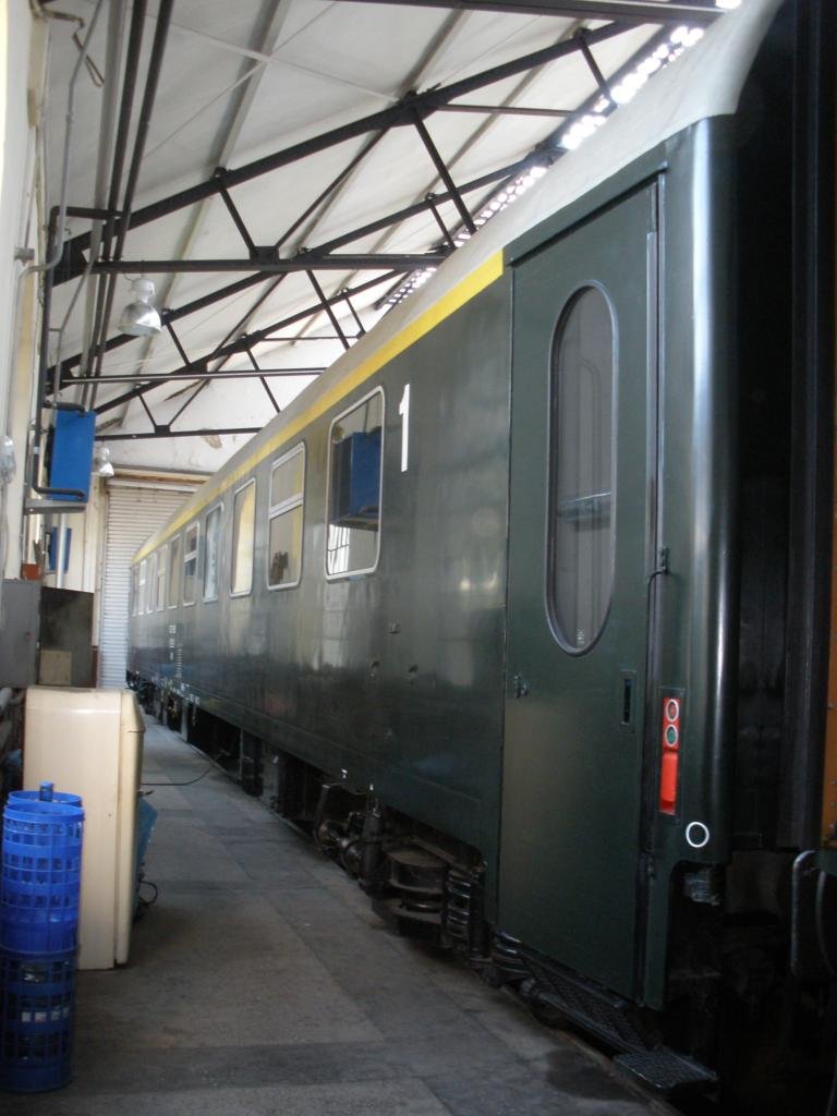A first class passenger car of class 63 (type "Amp") with personal number 51 52 15 63 007 - 7 , equipped with an automatic doors and air condition.This passenger car is modified and adapted into a tourist car and have using in the attraction trips with the foreign tourist groups all over the world. To date 26.08.2009 this first class car standing in special depot in Sofia and waiting to be include in composition of the attraction trains.