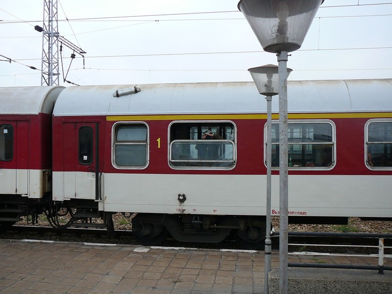 A_first_class_passenger_car_of_class_74_type_Am_at_railway_station_Pazardjik_in_composition_of_fast_17_09_2020.jpg
