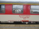 A first class passenger car of class 40 (type "Ame") at central railway station Sofia in composition of fast train with number 3623 to Burgas via Karlovo.