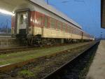 A second class passenger car of class 74 type "Bm" at central railway station Sofia in composition of night fast train with number 3637 to Varna via Karlovo.