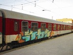 BDZ Bme passenger car in Bucuresti Nord station, waiting to be attached to the train for Budapest. Date: April 13th, 2005.